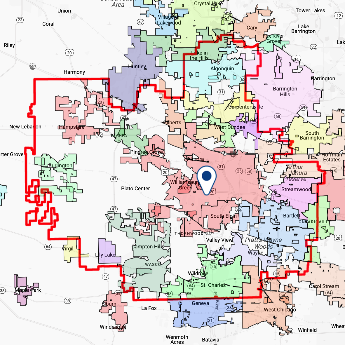 Please Note: Some people with addresses in Barrington Hills, Carol Stream, Cary, Elburn, Fox River Grove, Hoffman Estates, Huntley, LaFox, Maple Park, Schaumburg, Sycamore, Virgil, and West Chicago are also district residents.