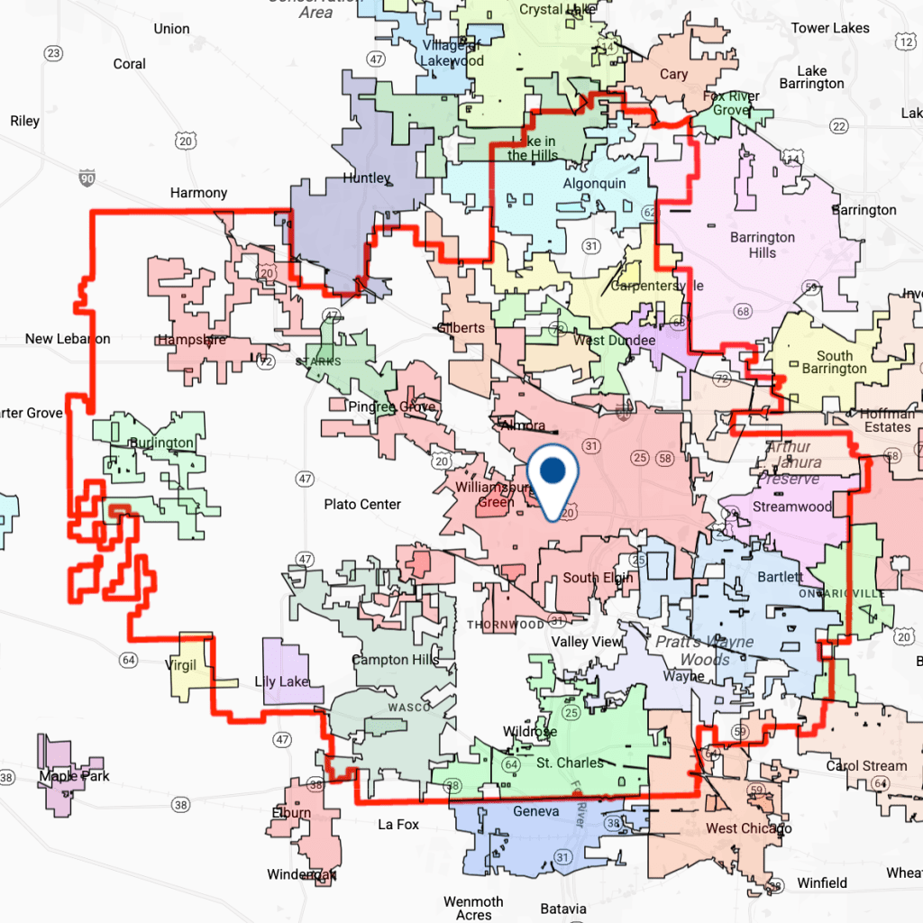 Most of District 509 is in Kane County with portions in DeKalb, Cook, McHenry, and DuPage. More information about each county’s voter information is below.